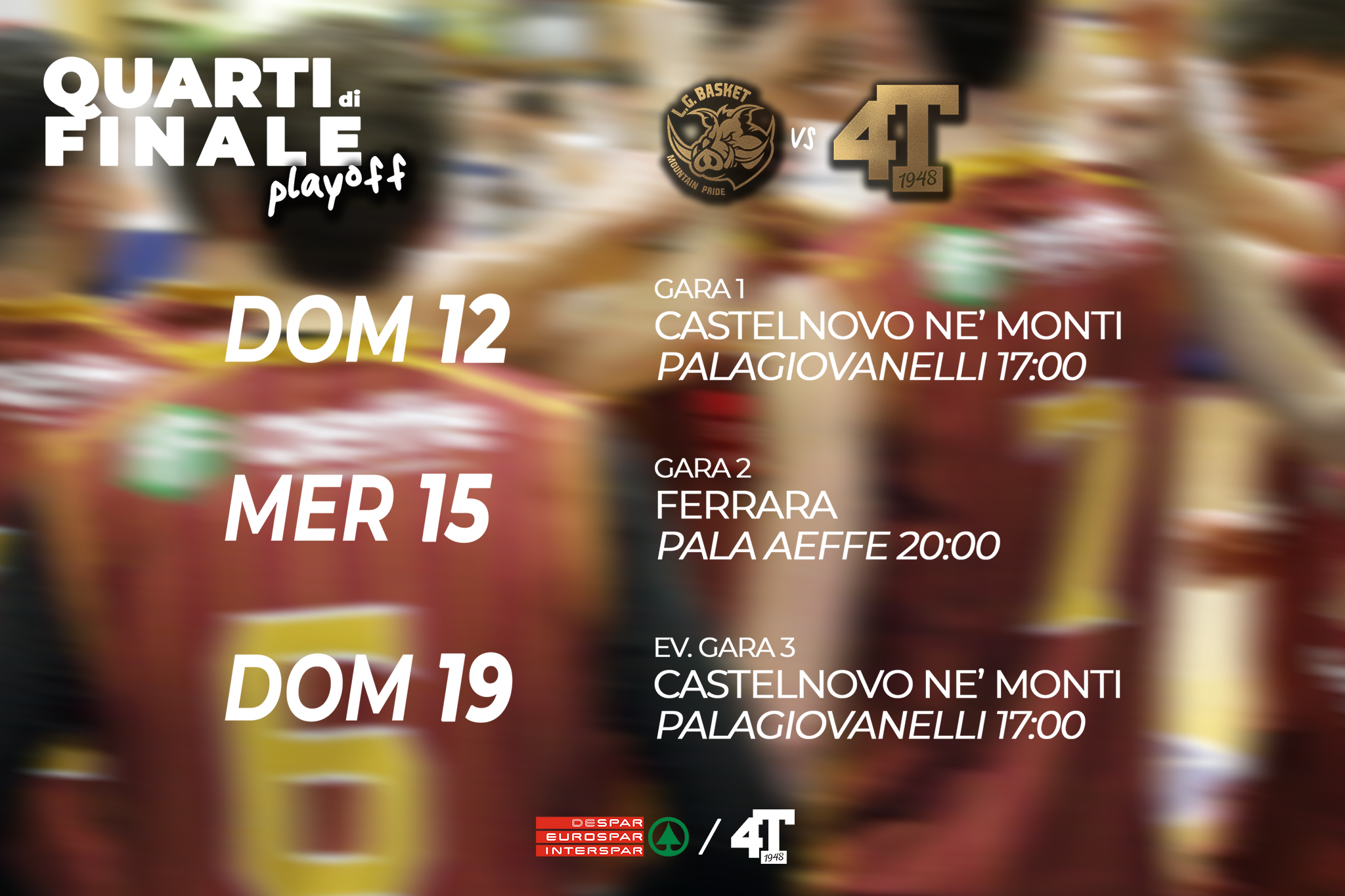 Gara 1: E80 Group Castelnovo Monti – Despar 4 Torri, 12 aprile 2026, ore 17:00 al PalaGiovanelli di Castelnovo ne’ Monti.